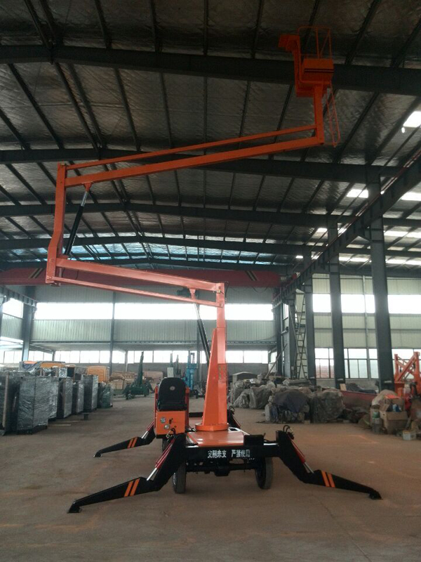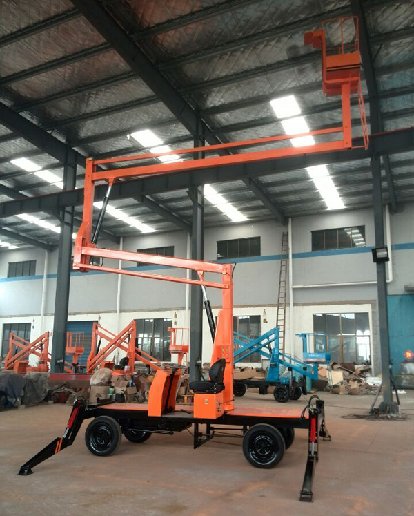 自行曲(折)臂式升降機(jī)升高時候是曲折狀態(tài)的,升降平臺的結(jié)構(gòu)采用了機(jī)電液一體化、可靠性設(shè)計和計算機(jī)輔助設(shè)計等技術(shù),是一種全液壓驅(qū)動、自行式專用底盤。突破了以往國內(nèi)高空作業(yè)升降機(jī)只能采用汽車或起重機(jī)底盤改裝設(shè)計的限制。自行曲(折0臂升降機(jī),曲臂式往往體積較小,帶載行駛、作業(yè)穩(wěn)定性好。底盤結(jié)構(gòu)突破了傳統(tǒng)的設(shè)計理論和方法,通過優(yōu)化上車平臺總體布局與載荷分布,減少了重心偏移。采用獨(dú)特的大角度后仰式鉸點(diǎn)結(jié)構(gòu),合理設(shè)置多種配重模塊,有效地平衡了工作力矩。采用H型變截面復(fù)合箱梁剮性車架和高負(fù)荷橡膠輪胎,增加了底盤整體剛度,保證了整機(jī)行駛、作業(yè)過程的穩(wěn)定性實現(xiàn)了高空作業(yè)升降機(jī)帶載行駛的功能。通過大臂前端托架可以快速安裝舉升裝置或載人平臺,實現(xiàn)物料舉升、起重吊裝和載人高空作業(yè)等功能同時為擴(kuò)展作業(yè)裝置以及各種工作裝置的快速切換提供了接口。設(shè)計的三維旋轉(zhuǎn)托舉裝置,既能夠自動保持被舉升物料的姿態(tài),又可以實現(xiàn)舉升物料在空間內(nèi)任意高度、任意位置和任意方向的調(diào)整要求,速度控制精確靈敏,微動性能好,滿足了大型洞庫內(nèi)高空作業(yè)與通風(fēng)管道安裝的要求。