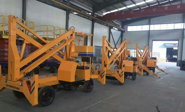 自行曲(折)臂式升降機升高時候是曲折狀態的,升降平臺的結構采用了機電液一體化、可靠性設計和計算機輔助設計等技術,是一種全液壓驅動、自行式專用底盤。突破了以往國內高空作業升降機只能采用汽車或起重機底盤改裝設計的限制。自行曲(折0臂升降機,曲臂式往往體積較小,帶載行駛、作業穩定性好。底盤結構突破了傳統的設計理論和方法,通過優化上車平臺總體布局與載荷分布,減少了重心偏移。采用獨特的大角度后仰式鉸點結構,合理設置多種配重模塊,有效地平衡了工作力矩。采用H型變截面復合箱梁剮性車架和高負荷橡膠輪胎,增加了底盤整體剛度,保證了整機行駛、作業過程的穩定性實現了高空作業升降機帶載行駛的功能。通過大臂前端托架可以快速安裝舉升裝置或載人平臺,實現物料舉升、起重吊裝和載人高空作業等功能同時為擴展作業裝置以及各種工作裝置的快速切換提供了接口。設計的三維旋轉托舉裝置,既能夠自動保持被舉升物料的姿態,又可以實現舉升物料在空間內任意高度、任意位置和任意方向的調整要求,速度控制精確靈敏,微動性能好,滿足了大型洞庫內高空作業與通風管道安裝的要求。
