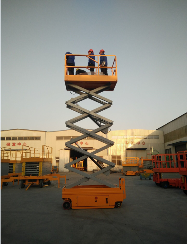 自行剪叉式升降機具有自動行走功能,整機一體式設計,內置電瓶電源,滿足在不同工作狀態下,不需外接電源,不需外來動力牽引即可升降自如,而設備的行走轉向也只需一人便可完成。操作人員只需掌握好設備前的控制手柄即可完成設備前進、后退、轉向、快、慢速行走和上下等動作。自行剪叉式升降平臺移動靈活,操作方便、省工、省力令高空作業更方便快捷,是現代企業高效安全生產之理想高空作業設備。