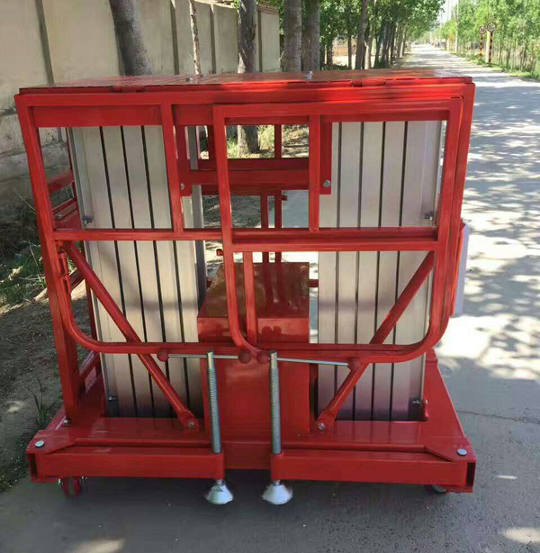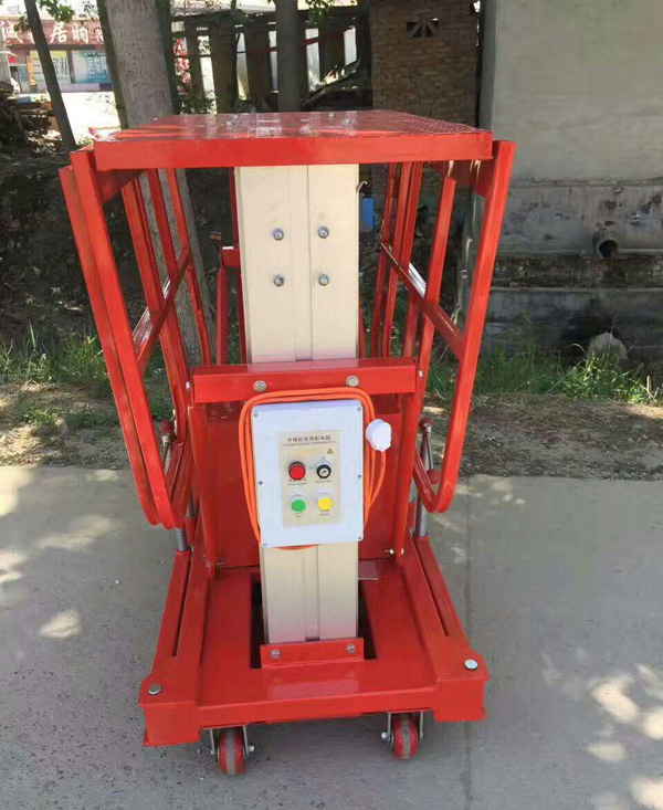 鋁合金升降機升高高度在8米以下為單跪柱式,在10米到14米之間為雙跪柱式,15米到18米之間則升為三跪柱式或四跪柱式。通過升降平臺跪柱的增加達到設備在高空的穩定性,保證作業安全,減小設備晃動的幅度,使高空作業更加平穩。該升降平臺配備了中德合資的液壓泵站,該泵站為壓鑄鋁集成閥塊,結構緊湊,系統壓力16MPa,經過液壓泵站帶動鏈條傳動,結構合理,設計緊湊。鋁合金式液壓升降平臺下降速度可自調,而且設備設有手動下降裝置,保證在停電時的正常工作;設有應急停運按鈕;臺面設有防滑絕緣扣板,更換方便,易于清潔,維修方便,有效保障工作安全可靠,保證使用人員的安全。外形美觀,整體輕盈,能在小的空間內發揮好的舉升功能,也可根據客戶要求加裝蓄電池以滿足客戶工作場地的不同要求。