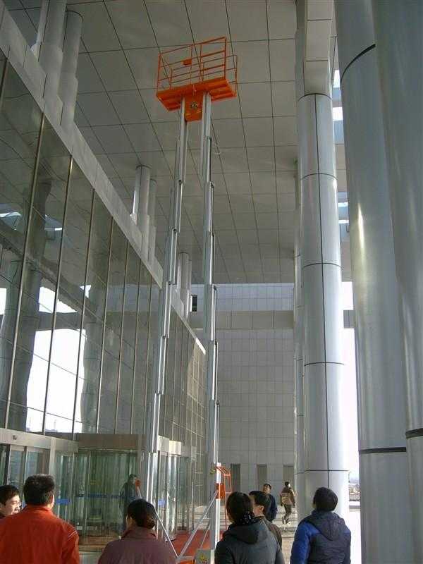 鋁合金升降機系列產品為多為室內型,廣泛適用于星級酒店,大型超市等各行業大廳、廠房內的高空作業,具有升降平衡,操作方便,能進入一般門廳,可隨意進出電梯且耗電少、無污染、工作時不傷地面,可用于貼墻工作及探出作業,工作無死角。鋁合金式液壓升降平臺產品采用鋁合金材料,動力經過液壓泵站帶動鏈條傳動,結構合理設計緊湊。鋁合金升降作業平臺根據升高高度分為單柱、雙住、三柱和四柱式,具有造型美觀、體積小、重量輕、升降平穩等優點,并能夠上下操作,升降平臺廣泛用于酒店賓館、車站候車室、機場候機樓、影劇院、展覽館、體育館等場所,是保養機具、油漆裝修、調換燈具、電器、清潔保養等用途的伴侶。