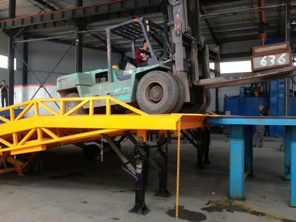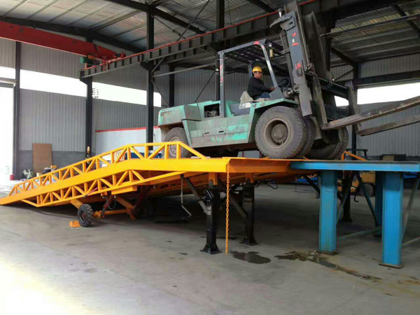 移動式液壓登車橋主要用于無裝卸設(shè)備的貨臺及流動裝卸場所,可與叉車配合使用,是貨物裝卸專用輔助設(shè)備。產(chǎn)品可達(dá)到的最低高度為1.1米,最高高度為1.8米,可以根據(jù)貨車高度進(jìn)行調(diào)節(jié),是裝卸貨物不可缺少的升降液壓設(shè)備之一。移動式液壓登車橋的主要作用是在地平面與車廂之間搭起一座橋,有了它,叉車能直接從地面攜帶貨物駛?cè)肫囓噹麅?nèi)部,進(jìn)行批量裝卸作業(yè)。使用時前板架在貨車車廂上,起到承載重量的作用,減少了貨物重量對液壓設(shè)備的壓力,保證了液壓登車橋的使用壽命,從而達(dá)到長期使用的目的。借助液壓登車橋,叉車能直接駛?cè)肫嚰b箱內(nèi)部進(jìn)行批量裝卸作業(yè)。